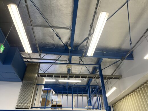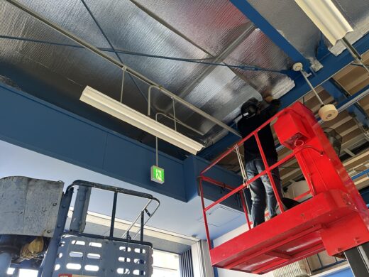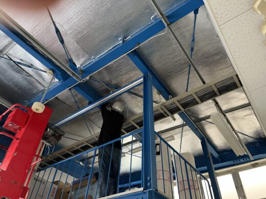 工場に併設されたガレージを作業現場に変更したいため、暑さ・寒さ対策をしたいとご相談がありました。断熱材を貼ってほしいと相談を受けましたが、断熱材よりも屋内施工の遮熱シートの方が経年劣化も少なく、遮熱性にも優れているため、はるクールを提案いたしました。